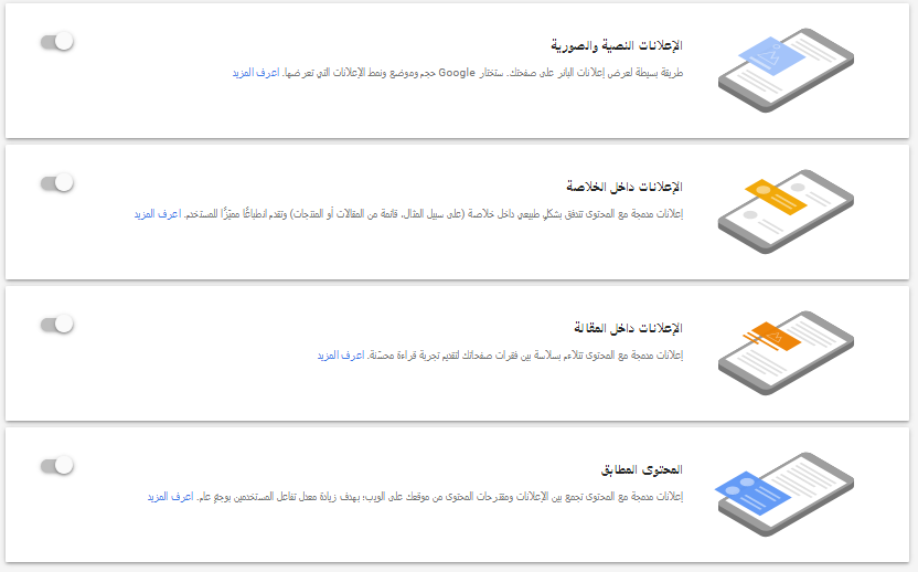 Adsense adopts automatic ad systemIt is an alternative system for page level ads to give it more improvement and effectiveness. If you're already using Page-level ads on your site, your existing settings will be migrated to automatic ads. You can find the new General Settings on the Automatic Ads page within your account. You do not need to paste the ad code (ad code) again, as automatic ads and page-level ads use the same ad code. What's new with these automatic ads?Automatic ads are based on page-level ads, offering new opportunities like: New ad formats:(Such as text and display ads, in-house ads, etc.) as well as current formats such as static ads and full screen adsAdvanced URL settings that allow you to show different automated ads on different pages of your sites.Now how do you set up new automatic ads if you have not enabled page level ads from a previous one? To set up automatic ads, you must first choose which ad formats you want to display on all pages of your site. These will be General Settings. You can then copy and paste the ad code into each page where you'd like automatic ads to appear. Once you're done, you can choose to show different ad formats on some of your pages by creating a set of URLs. To set up automatic ads, follow these steps: Sign in to your AdSense account.In the left navigation panel, click My ads.Click Automatic Ads.On the "Choose your public settings" page, use the controls to choose which ad formats you'd like to view.Leave new forms automatically if you want AdSense to automatically add new ad formats to your public settings when available.Click Save.On the "Place code on your page" page, click Copy icon.Paste the ad code into my tag<head>And</ head>Per page where you'd like automatic ads to appear. If you're not sure how to do this, see the Code Execution Guide from Adsense.Note : If you choose the "Show ads when I activate my account" option when you link your site to AdSense, that means we've set up automatic ads for you. To change your general settings, go to the Automatic Ads page and click (edit). Note that you must do this once per page. The ad code is the same for each page on each site where you'd like automatic ads to appear. After you paste the ad code, you can still make changes to your automatic ad settings at any time without having to change your ad code. Click Done. Automatic ads will now appear on your pages within about 10 minutes to 20 minutes.Track automatic ad performanceYou can track the performance of your automated ads by viewing the Ad Formats report on your Performance reports page. Automatic ads are displayed within ad format labels (static ads and full screen ads) in the report. Adsense adopts automatic ad system